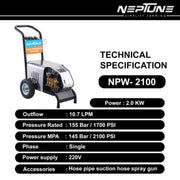 Neptune NPW-2100 Electric High Pressure Washer – 2100W Motor, 145 Bar for Professional Cleaning